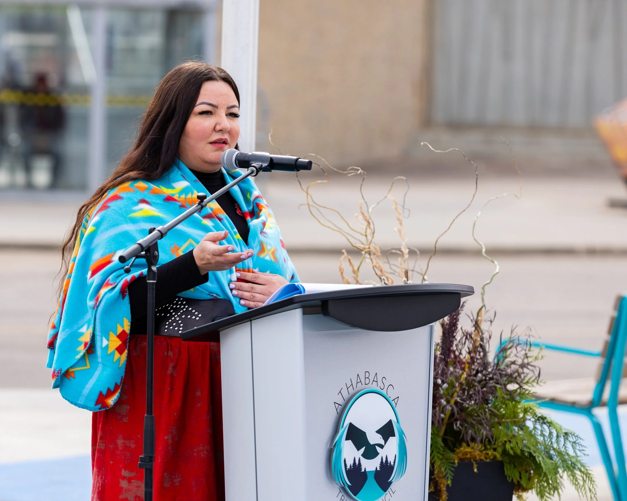On Sunday, May 5th, 2024, it is estimated that 500 residents of the Wood Buffalo region and honoured guests gathered at Kiyam Community Park in Fort McMurray for a day of events. The day was planned by the MMEIP Taskforce, which includes partners from the ATC - Athabasca Tribal Council, Nistawoyou Association Friendship Centre, and the Regional Municipality of Wood Buffalo, along with Elders, grassroots advocates, and local support organizations.